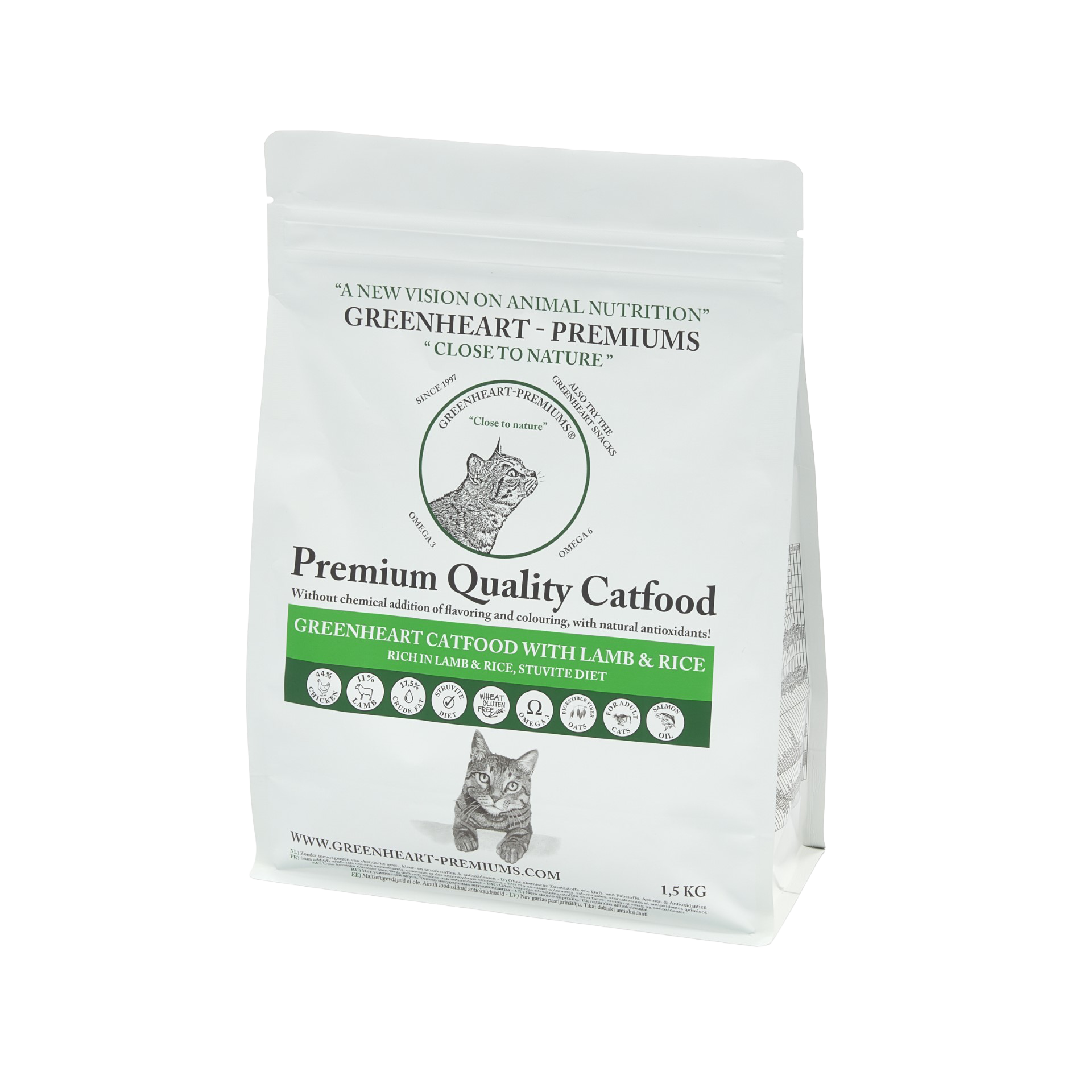 Greenheart-Premiums staat al 25 jaar garant voor hoogwaardige honden- en kattenvoeding. De recepten zijn innovatief, gezond en vrij van chemische toevoegingen. Het assortiment biedt voeding voor elk levensstadium en activiteitsniveau, inclusief speciale formules voor veterinaire voedingsbehoeften en dieetwensen, zoals biologisch voer, granenvrije en glutenvrije voeding, hypoallergeen voer en struvietdieet.