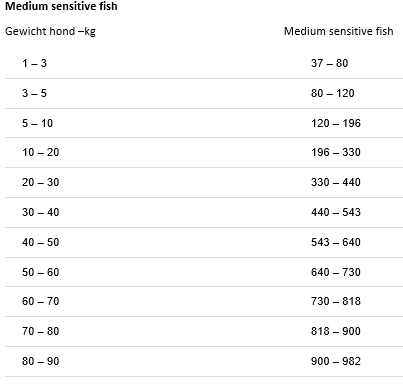 | Gemiddelde analyse | Ruw eiwit: 23% Ruw vet: 11.5% Ruw celstof: 4.2% Ruw as: 4.7% Ca/F: 0.9%/0.65% Energiewaarde in Kcal/kg: 3788 |