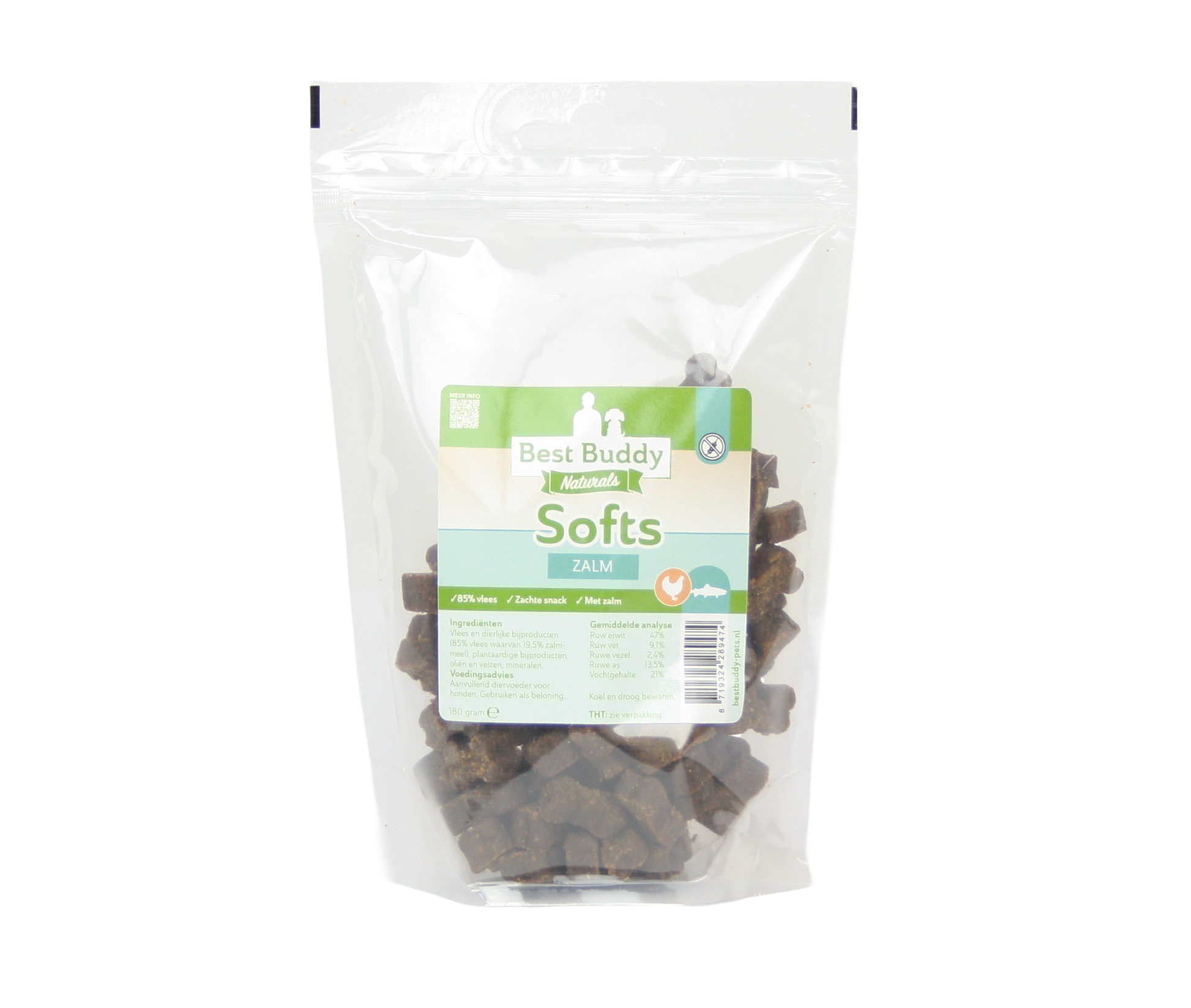 De zachte structuur maakt de Softs eenvoudig te breken, waardoor ze geschikt zijn voor honden van alle rassen en leeftijden. Perfect voor trainingen, wandelingen of gewoon als gezonde beloning. Bovendien zijn deze snacks 100% natuurlijk, glutenvrij en volledig vrij van kunstmatige geur-, kleur- en smaakstoffen. Een verantwoord én betaalbaar alternatief voor de bekende emmertjes trainingssnacks.
